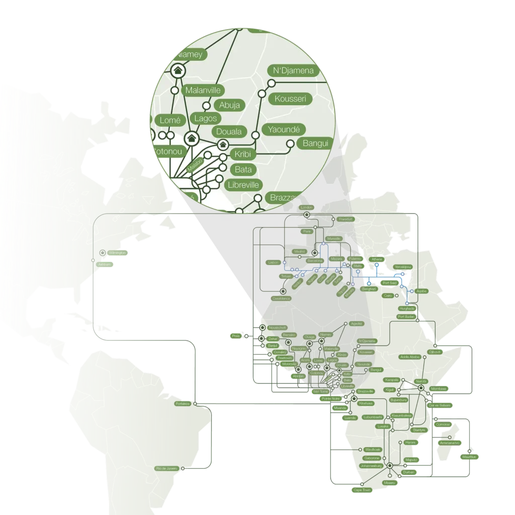 As part of the AFR-IX Telecom group, we combine our local presence in Douala and Yaoundé with a pan-African network backbone, enabling seamless connectivity between Cameroon, West Africa, and international markets.