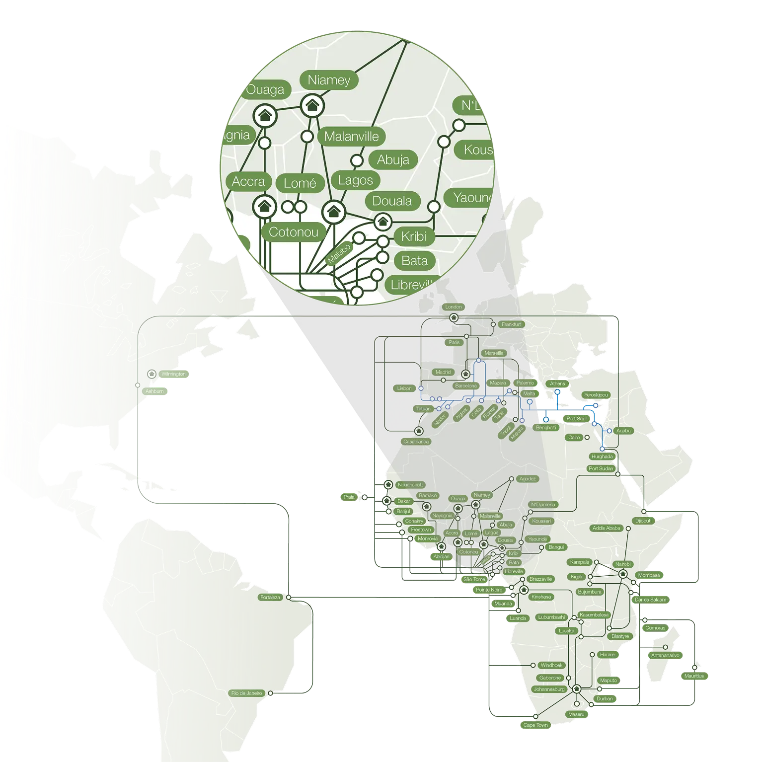 - Pan-African BackboneDirect access to our IP/MPLS network and international submarine cable systems ensures reliable, low-latency connections across the continent and beyond.
